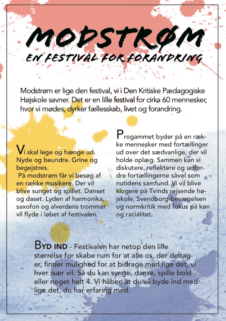 MODSTRØM – en festival for forandring er en lille festival med lige det format og indhold, vi selv drømmer om. Og du er inviteret med! .